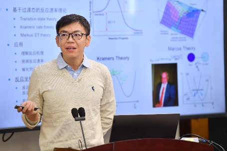学术成果报告交流环节由北京化学会监事申林教授主持,报告人林哲帅、莫凡洋、柯国霖、张骏、江剑分别做题为“新型中红外非线性光学硫族晶体的搜索和设计”、“AI提升合成化学研发效率”、“Uni-Mol+:基于构象优化的高精度量化属性预测模型”、“化学反应的AlphaZero: 复杂反应的过渡态强化学习”、“物理嵌入的机器学习力场”主旨报告。本次5个报告是经过文献数据定量筛选和同行评议,从数千篇论文中遴选出来的,展示了北京学者字在AI+化学领域取得的前沿进展。与会专家与报告人进行了充分交流,现场气氛热烈,引起广泛关注。